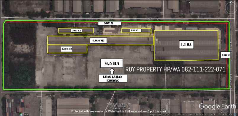 Dimensi Lahan : Lebar 168 m X Panjang 562 m