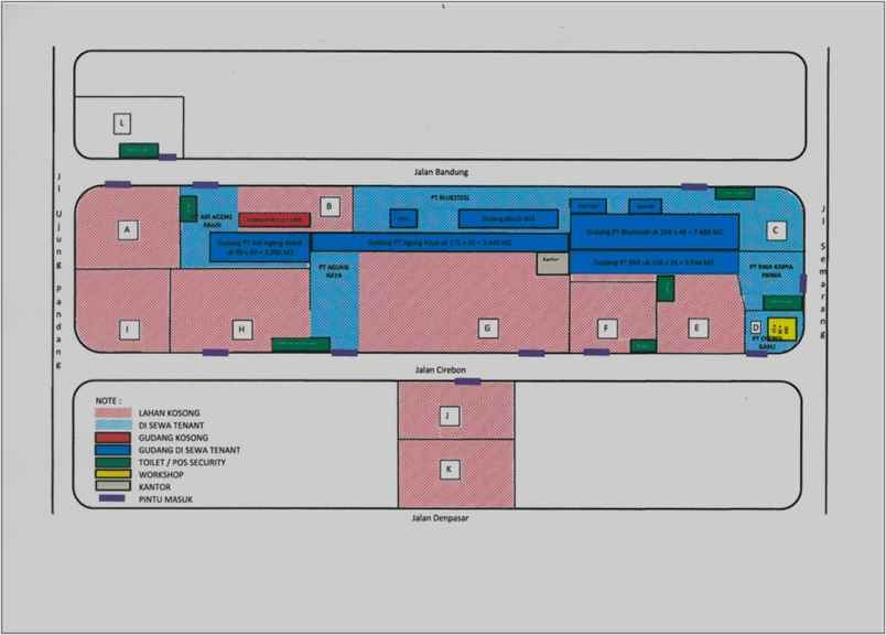 Luas Gudang : 2,1 Ha (+/- 21.000 m2)