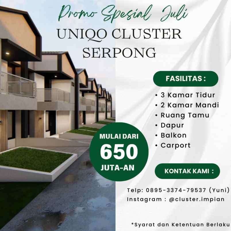 Uniqo Cluster Serpong Promo Spesial Bulan Juli, Exclusive Untuk 1 Unit Cluster Hanya 650 Juta! Syarat dan Ketentuan Berlaku.