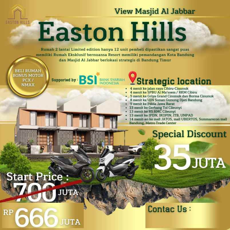 Cluster Easton Hills Cinunuk - Bandung Timur adalah Rumah 2 lantai yang dekat dengan pusat Kota Bandung .