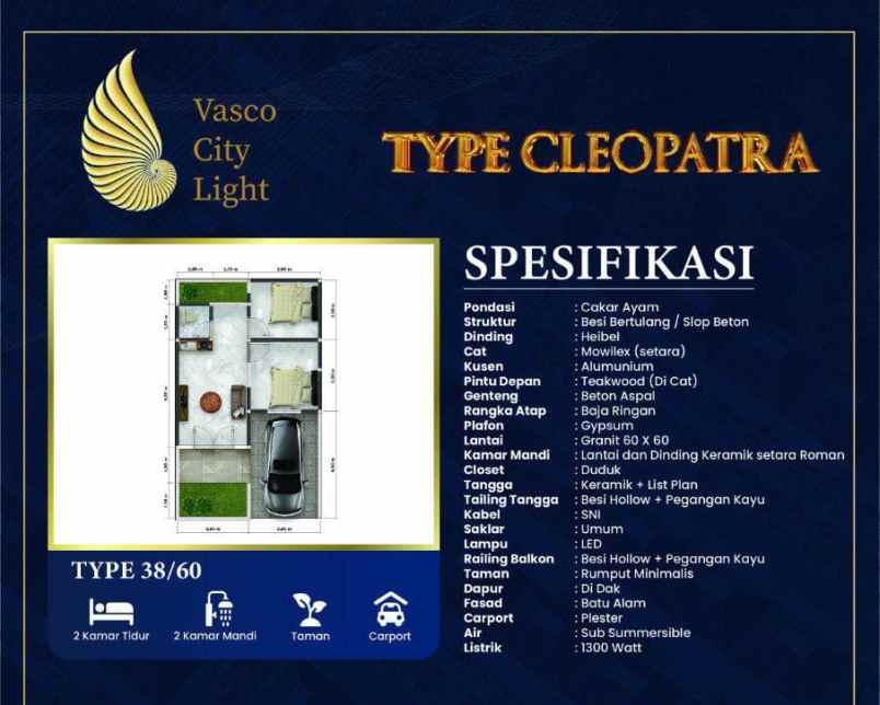 - Luas Bangunan38 m2