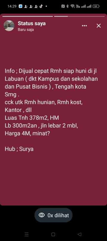 Dijual Rumah di jl Labuan Dr Cipto Semarang