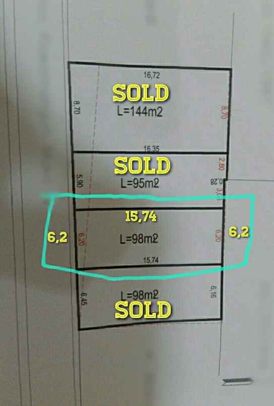 LT : 98 m2 ( 6,2 x 15,74 )
