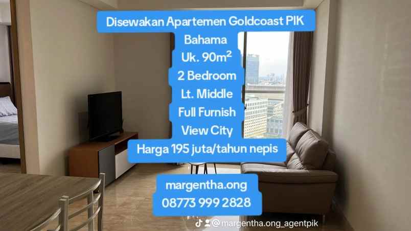 Disewakan Apartemen Goldcoast PIK Bahama Full Furnish View City