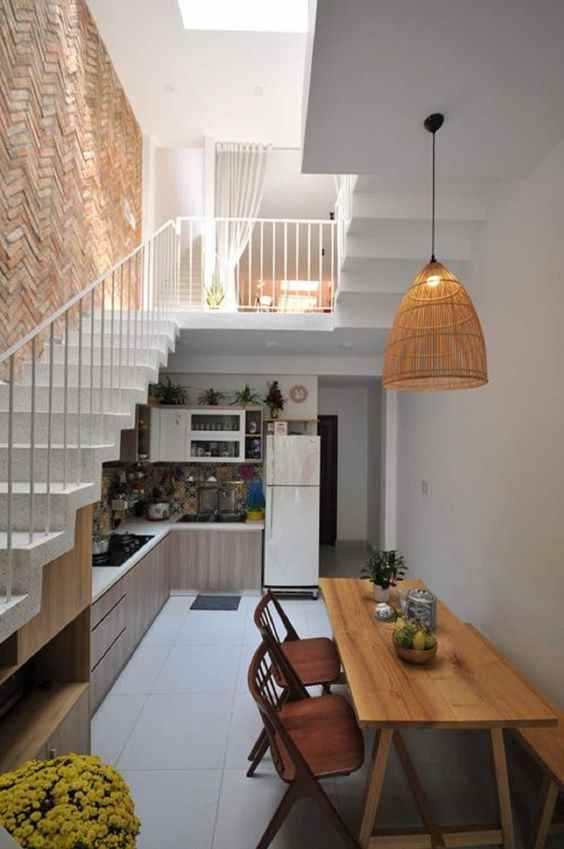 Agar terlihat berkelas dan tak monoton, maka bisa Anda padukan dengan warna netral semisal putih. Untuk bagian dalam ruangan gunakanlah berbagai perabotan simple seperti sofa berwarna tanah dengan meja dan lemari dari bahan kayu.